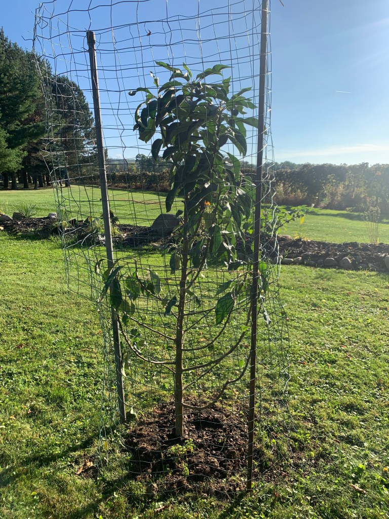 Unsure as to when she’ll blossom, how many she’ll produce, or even if she’ll make it through our treacherous Western New York winter. But we hope, we plant and water, wrap her in mesh and support her with metal posts… because I may have grandbabies someday and they’ll want Eema to bake a pie or make some sauce.